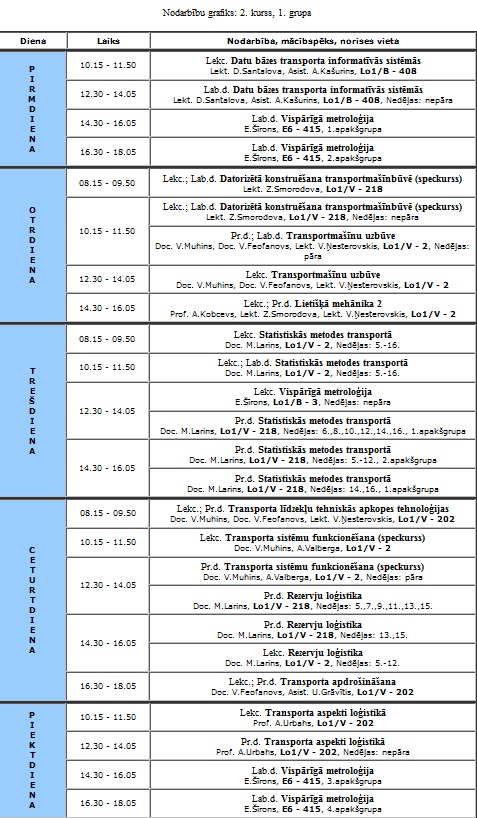 Nodarbību saraksts